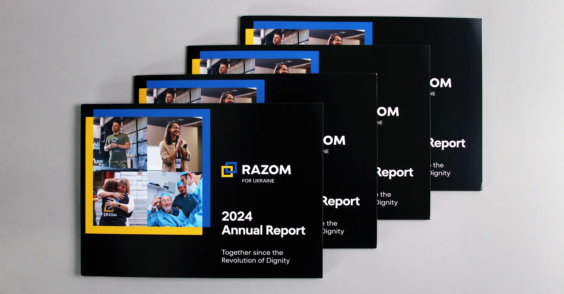 Razom is a U.S.-based not-for-profit organization that supports Ukraine. Razom, which means “together” in Ukrainian, unites a global network of more than 100,000 activists, doctors, engineers, educators, and legal and financial professionals. The organization reached out to Trillion to create an impact report that could effectively relay the huge scope of their endeavors and the myriad of ways they have brought humanitarian relief, health care, education and advocacy to Ukraine and its people. Using a clean design and typography, branded colors and numerous vivid photos, Trillion created a report that brings Razom and its work to life on the pages in a clear and impressive manner.